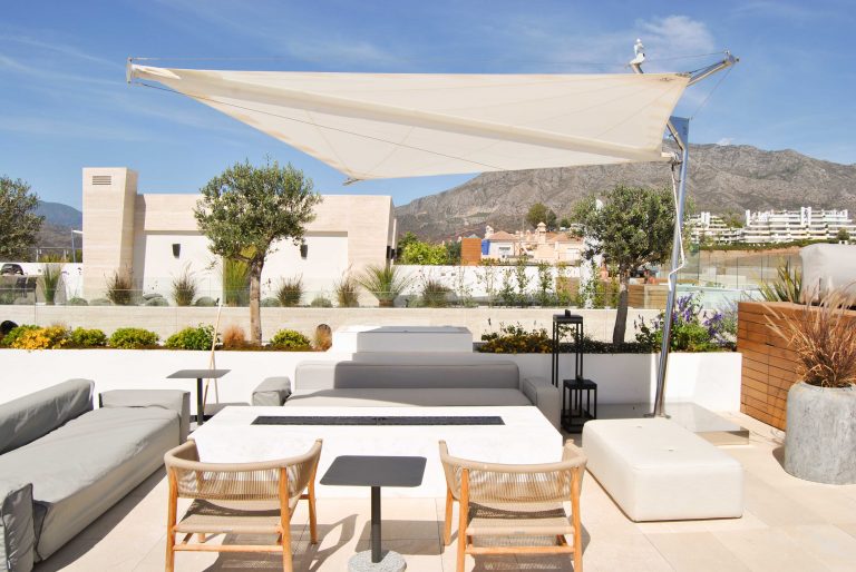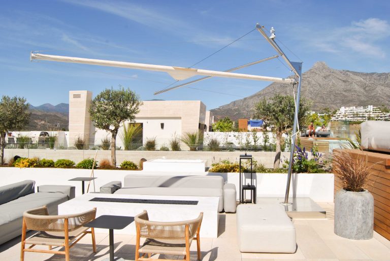 Nuestro experto equipo de instaladores tiene experiencia en la instalación de velas de sombra tensadas, fabricación de velas de sombra a medida, además de ofrecer opciones de compra y venta de toldos en Marbella, toldos de gran formato y pérgolas bioclimáticas.